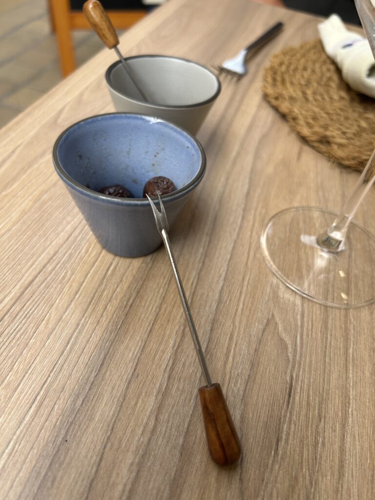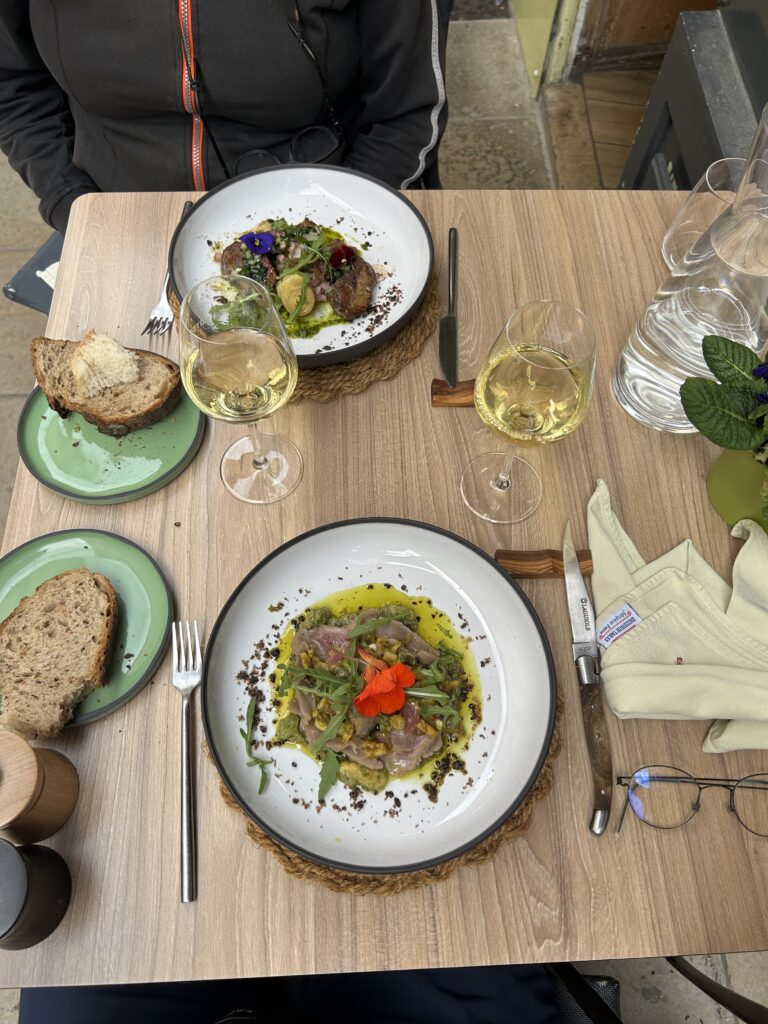 We hebben uitstekend geluncht bij lokaal restaurant met slechts twee tafels op het terras.