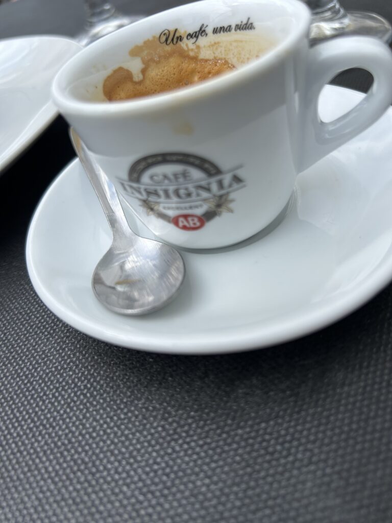 Nagerecht cake met chocolade en ahornsiroop met daarbij een cafe solo