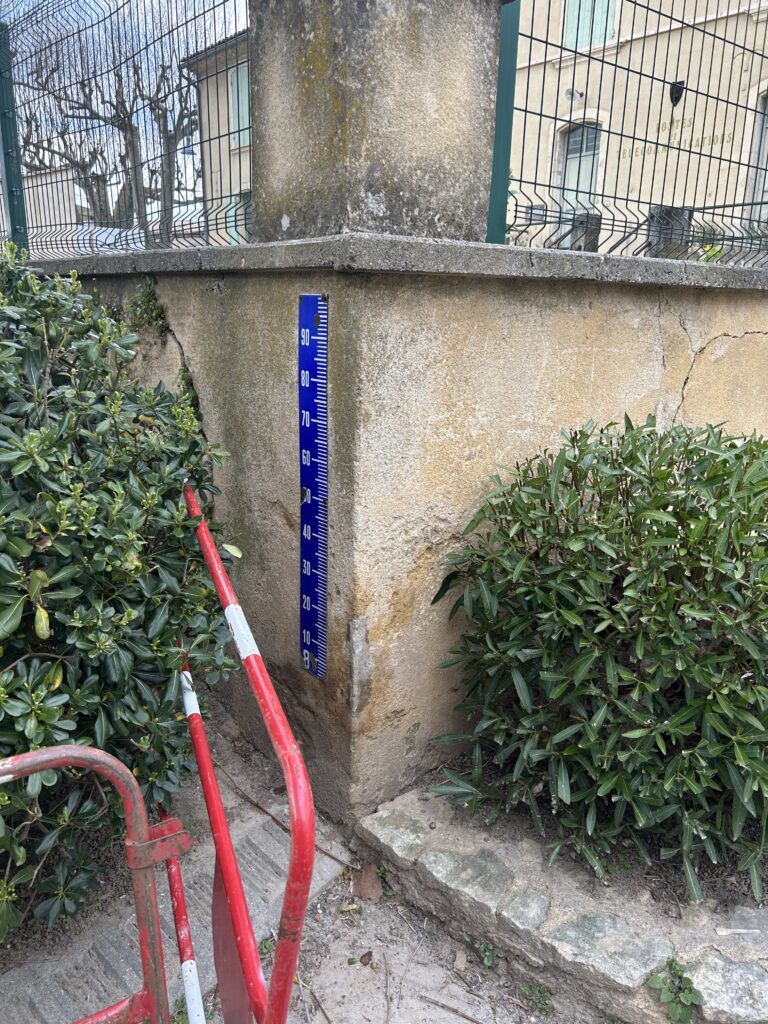 Door overstromingen van de Cèze is het water soms zo hoog gekomen dat de hele begane grond onder water stond. Op de gevel staat een markering met jaartal van de hoogste overstromingen.