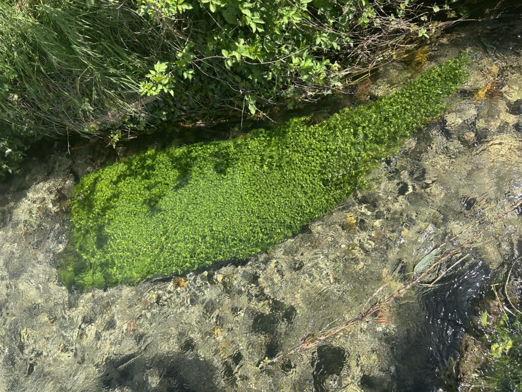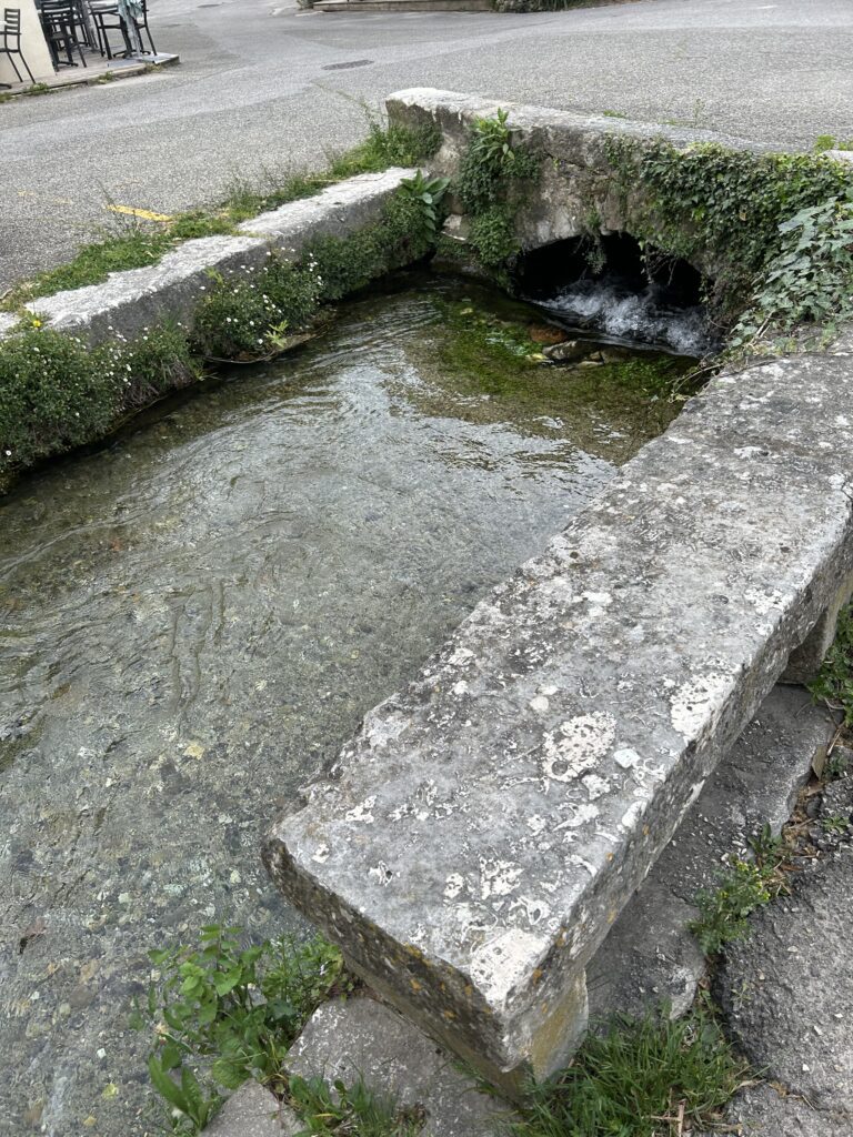De fontein op het plein in Goudargues is sinds wij hier komen nooit anders geweest: prachtig begroeid met mossen en kleine planten. Het water komt van hogerop direct ui de Cèze. Het stroomt dag en nacht.