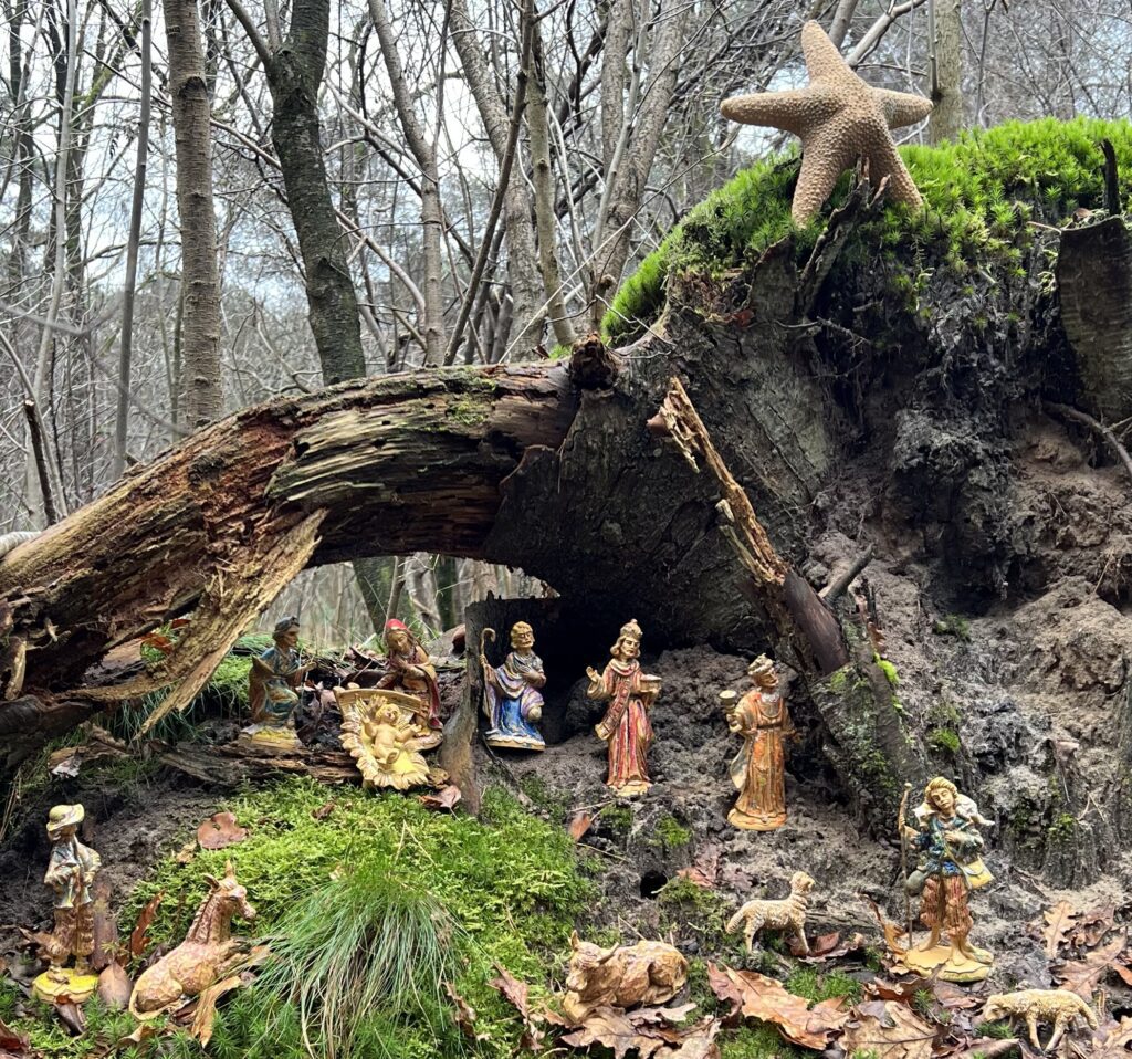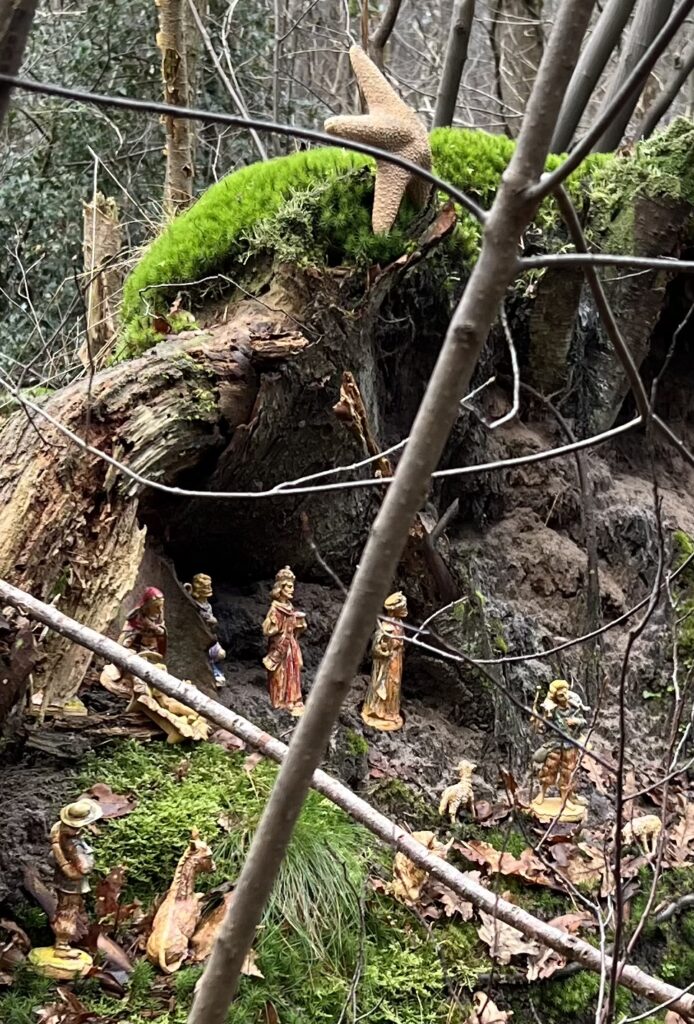 De Kerststal van Pa de Wit hergebruikt in een natuurlijke omgeving. Tijdens wandelen door het jaar heen, voorjaar, zomer, herfst en winter met Erwin en Hennie vaak langs deze plek gekomen. Dikwijls tegen elkaar gezegd dat dit een mooie plek zou zijn voor een kerststal. Deze beeldjes komen hier uitstekend tot zijn recht. Midden in het bos. Wij hebben de beeldjes daar achter gelaten, zodat passanten tijdens hun wandeling even kunnen stil staan bij hun gedachten. Wij wensen iedereen een fijne Kerst en een goed 2025!