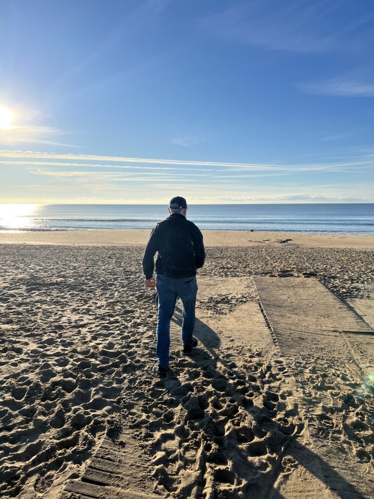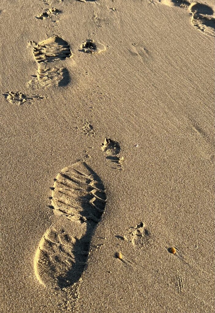 Vandaag ook 1ste strandmiddag: uitklapbare strandstoeltjes neergezet achter een zandduin en heerlijk genoten van het uitzicht over de Atlantische oceaan. Naast zitten genieten strandwandeling gemaakt op blote voeten lopend door de branding. Zeer heilzaam voor Aafjes constante pijn aan voet-been-dij rechts.