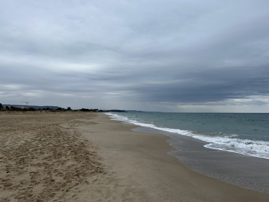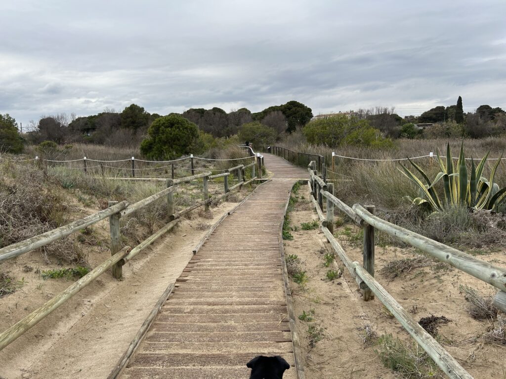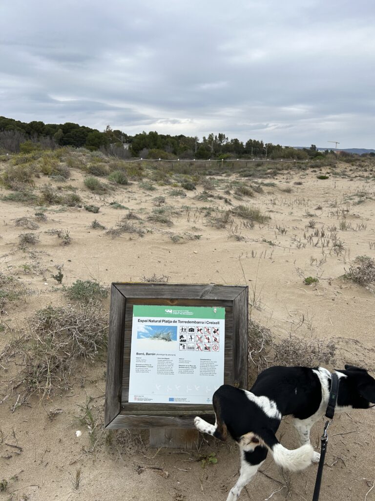 Voor Hennie was het weer extra feest; Torredembarra heeft een zandstrand waar honden los mogen rennen in de winter en dat heb ik gedaan samen met vrouwtje en baasje! Vanaf de camping kun je onder de spoorlijn doorlopen door een voetgangers en honden tunneltje en dan loop je via de duinen [mag ik niet in vanwege beschermde natuur] zo het strand op.
